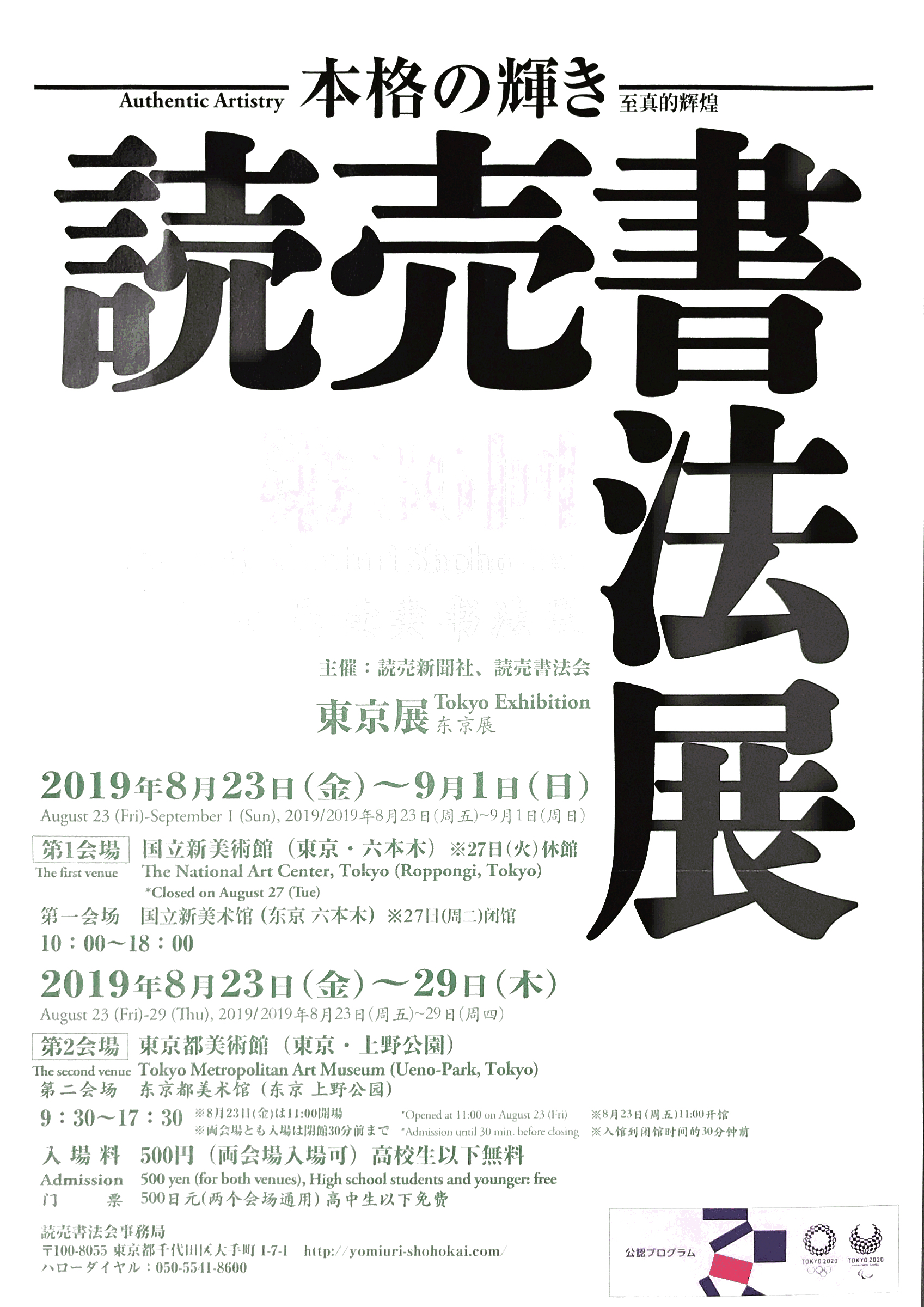 第36回 読売書法展(2019年)開催概要についてお知らせいたします。