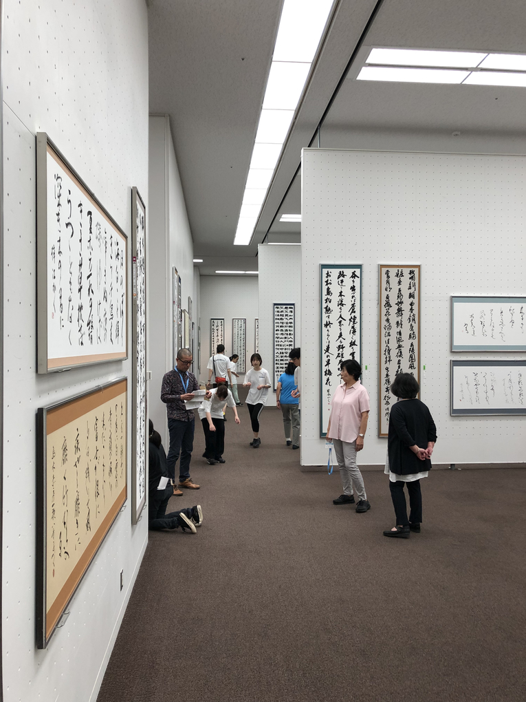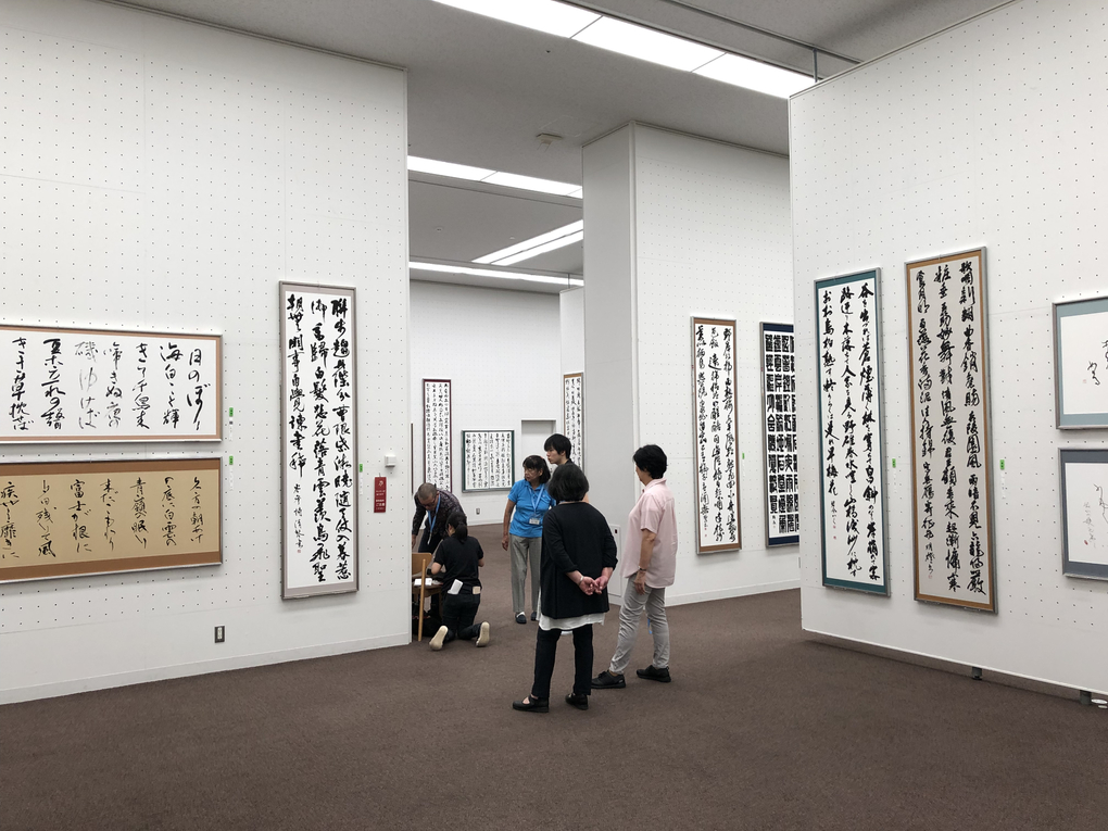 また、最高顧問、顧問、常任総務の先生方の作品に添えられた写真・略歴付きのプレートに印刷されたQRコードをスマートフォンなどで読み取ると、特設サイトで作品画像と作者コメントを読むことができるサービスも新たに始まり、好評を呼んでいます。